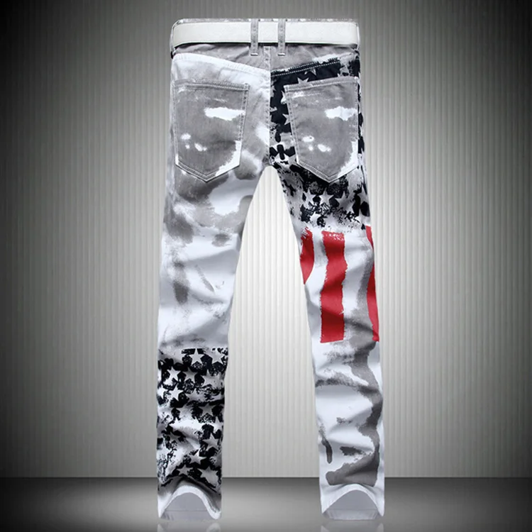 High Quality Mens Prints White Jeans Slim-fit Stretch Denim Pants Camouflage Casual Jeans Street Fashion Jeans Pants