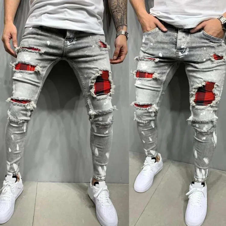 High Quality Men’s Sexy Hole Jeans Casual Male Ripped Skinny Trousers Slim Biker Outwears Pants