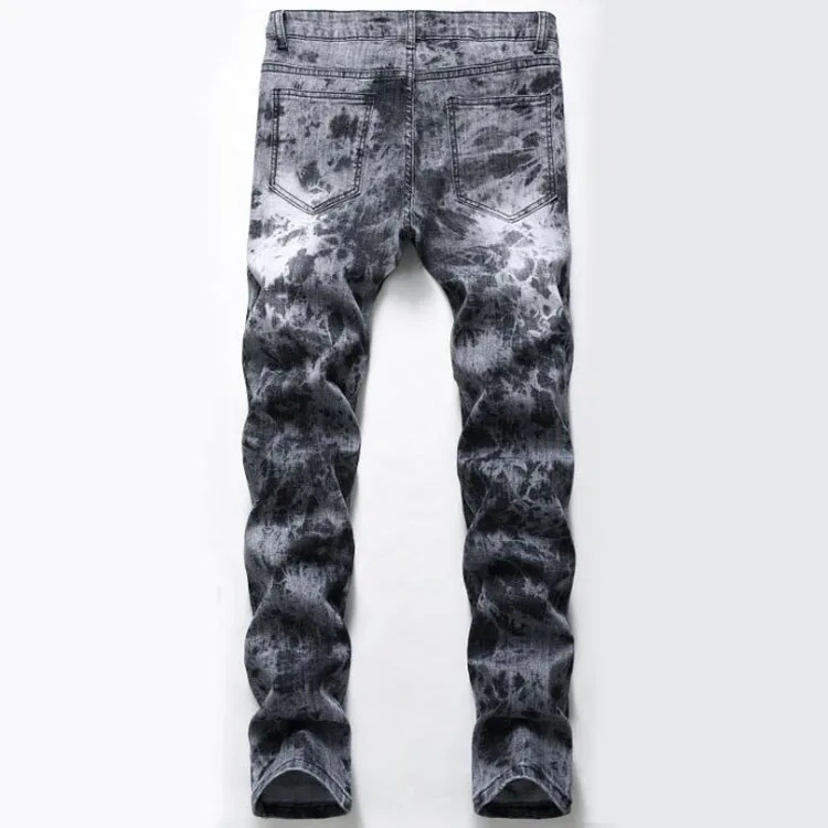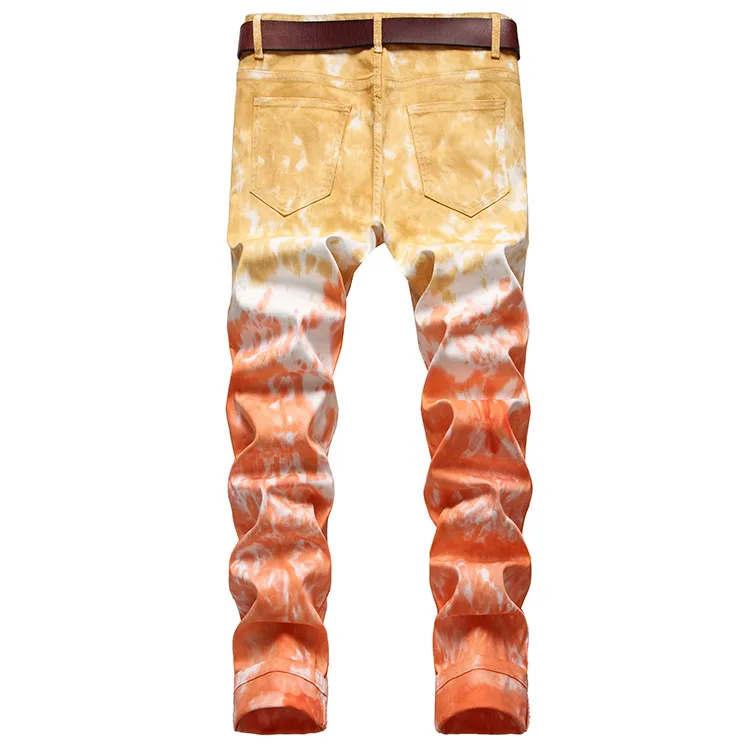 Fashion Men Colorful Street Jeans Mens Slim Tie-dye Straight Biker Jeans Male Denim Casual Cotton Pants Four Season Trousers