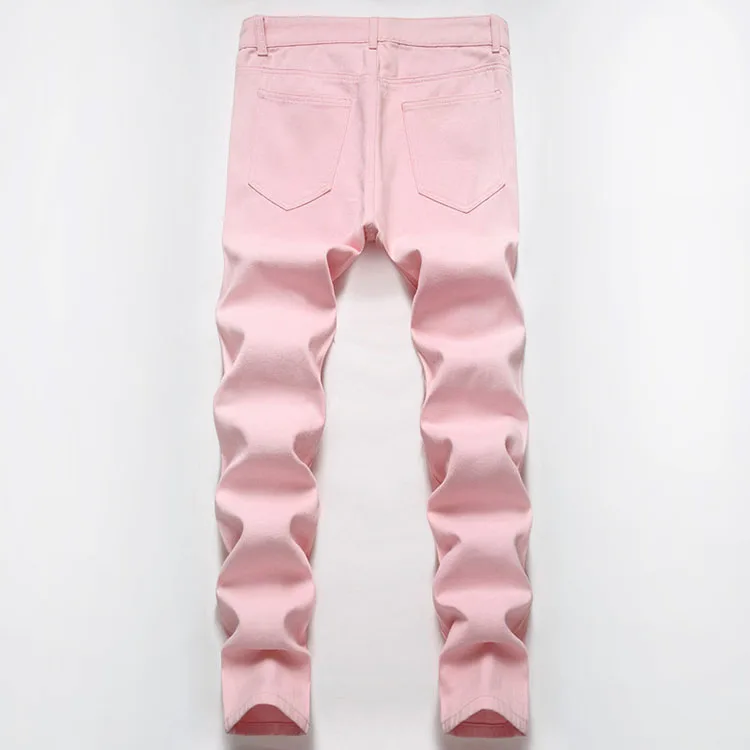 High Street Pink Biker Jeans for Men Summer Skinny Patchwork Pencil Denim Pants Hip Hop Solid Color Joggers Male