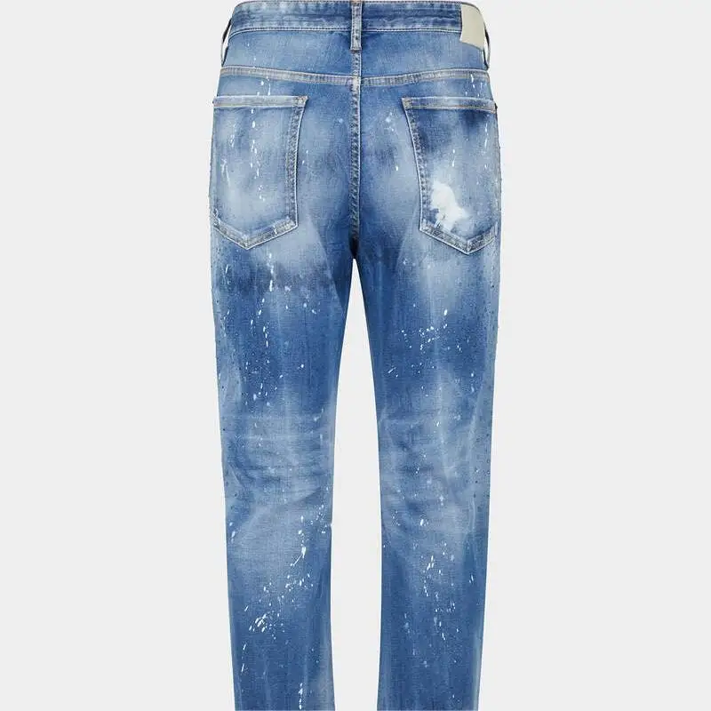 High Quality Light Blue Custom Logo fit Legs Ripped Vintage Washing Spot Custom Denim Men’s Distressed Washed Jeans