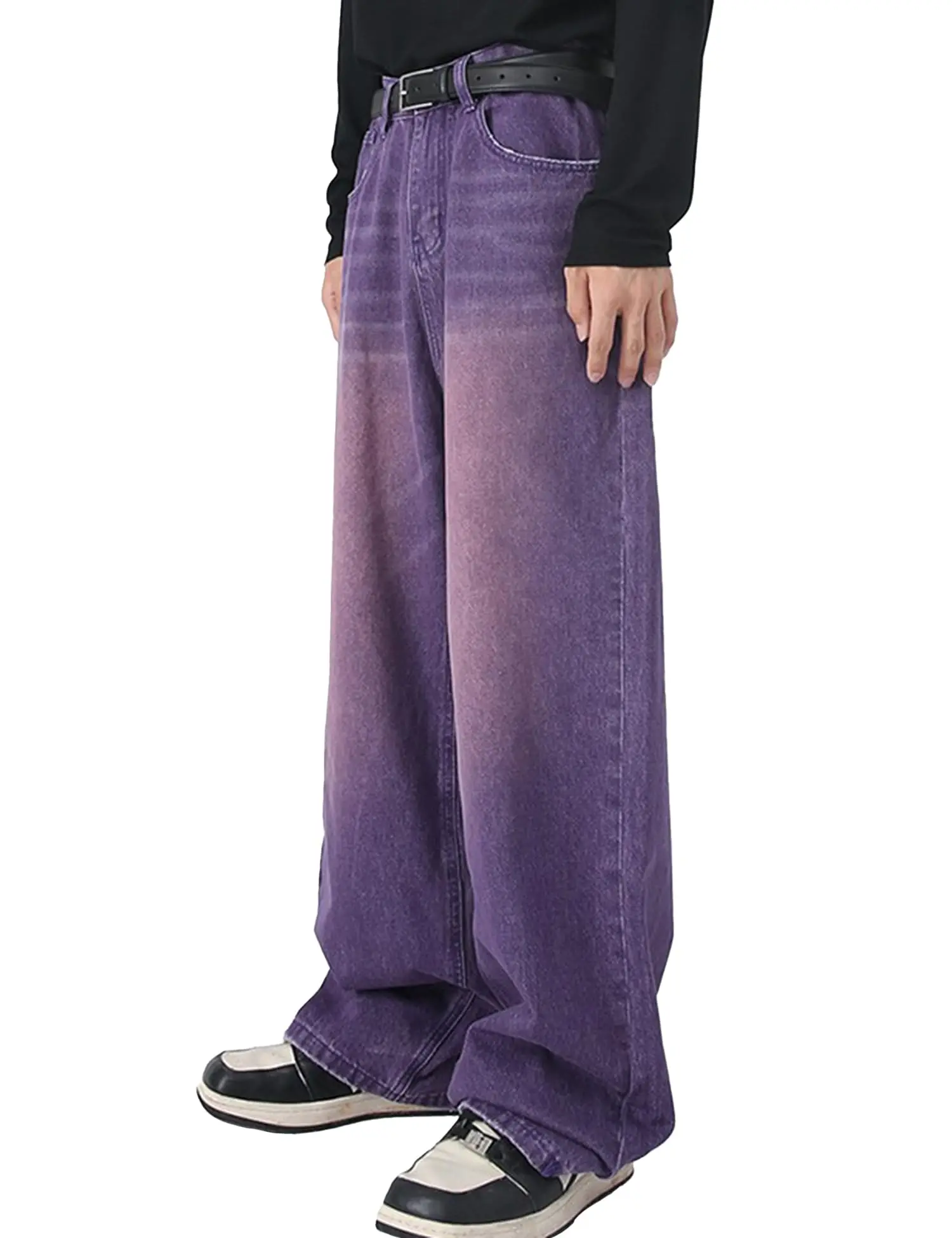 vintage colourful wide leg trousers jeans for men loose washed white purple straight jeans men