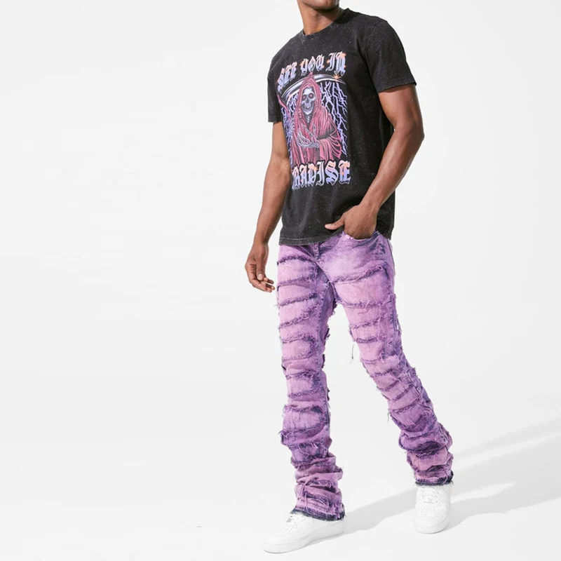 OEM High street Loose fit jeans men ripped jeans for men purple jeans men
