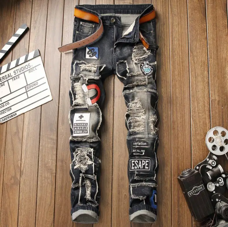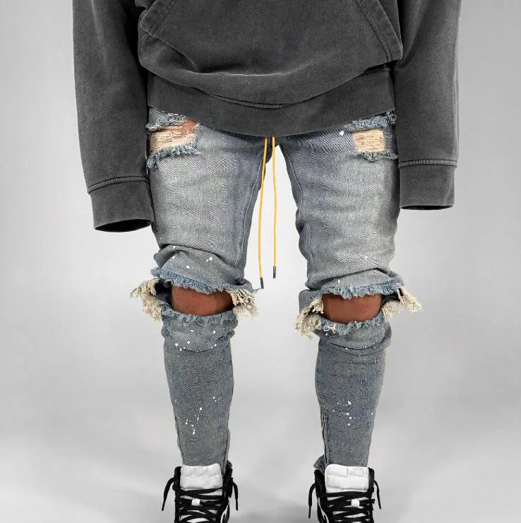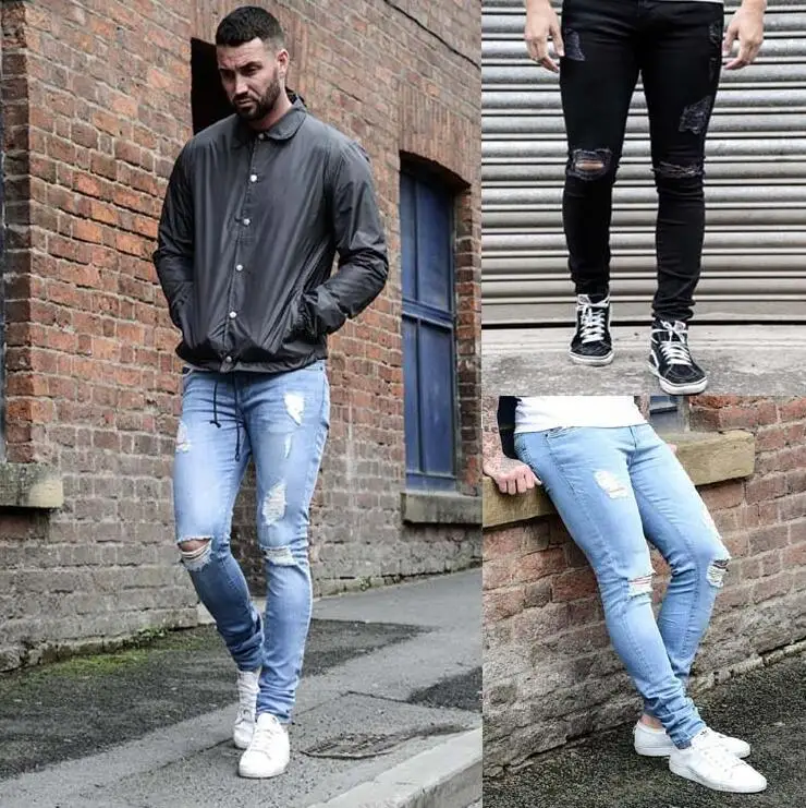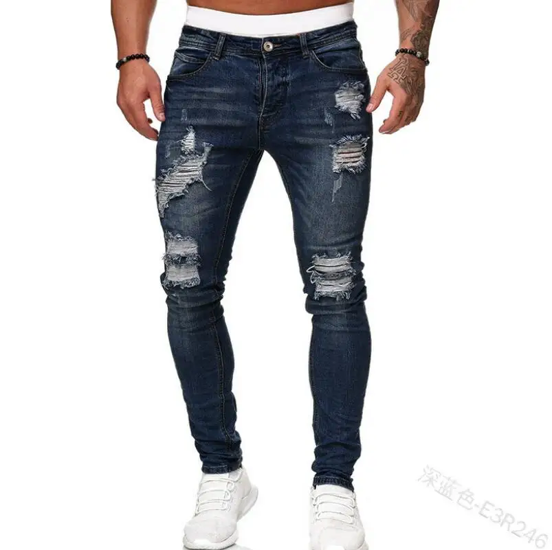 ripped hole slim Jeans men Fashion Hip hop Skinny pencil Jeans For Men stretch elastic ankle zipper jeans men