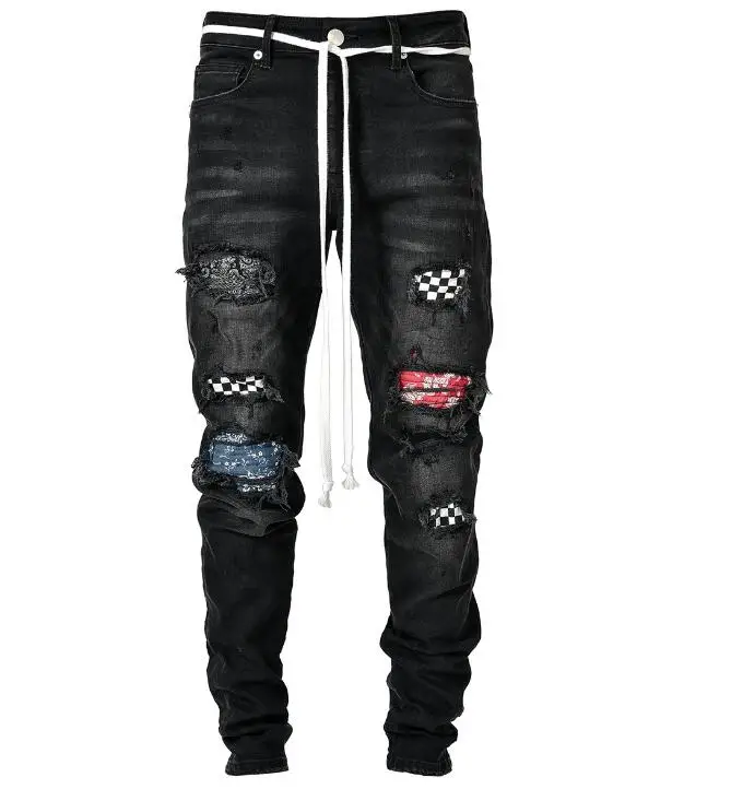 Men Jeans for Men Ripped Jeans Vintage Retro Jeans Motorcycle Pants Patchwork Printed Denim Pants Harajuku Trousers Hip Hop Punk