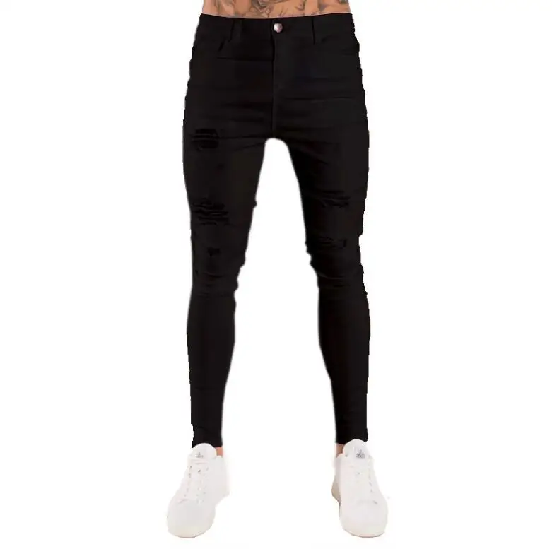 Men Black Skinny Denim Jeans Luxury Brand Street Wear Holes Long Jeans Pants Quality Men Stretch Casual Denim Pants Jeans