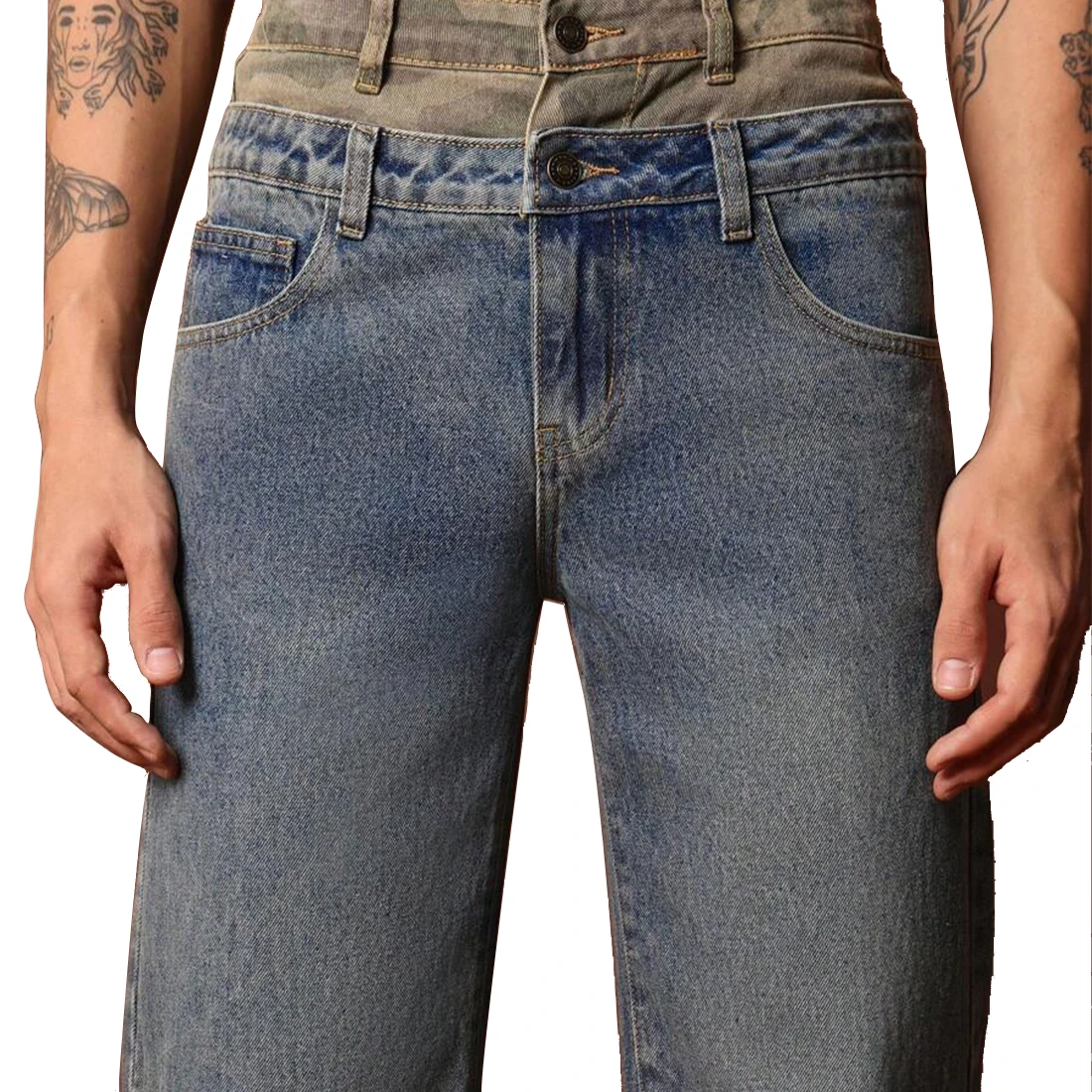 XUCHANG Men Manufacturer Streetwear Vintage Denim Baggy Washed Color Blocked Jeans Pants