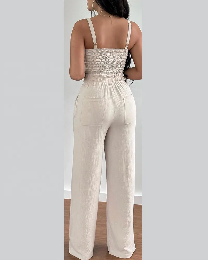 Women Clothing V-neck Vest Lace Up High Waist Straight Trousers Casual Outfits For Women