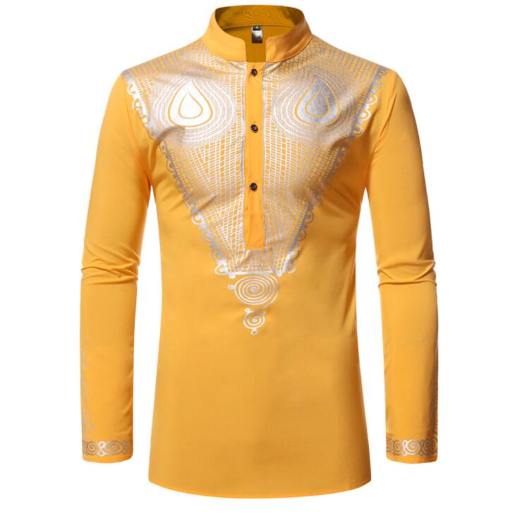 White African Dress Shirt Men Hip Hop Dashiki Robe Africaine Streetwear Men African Clothes Slim Fit Long Sleeve Shirt Male
