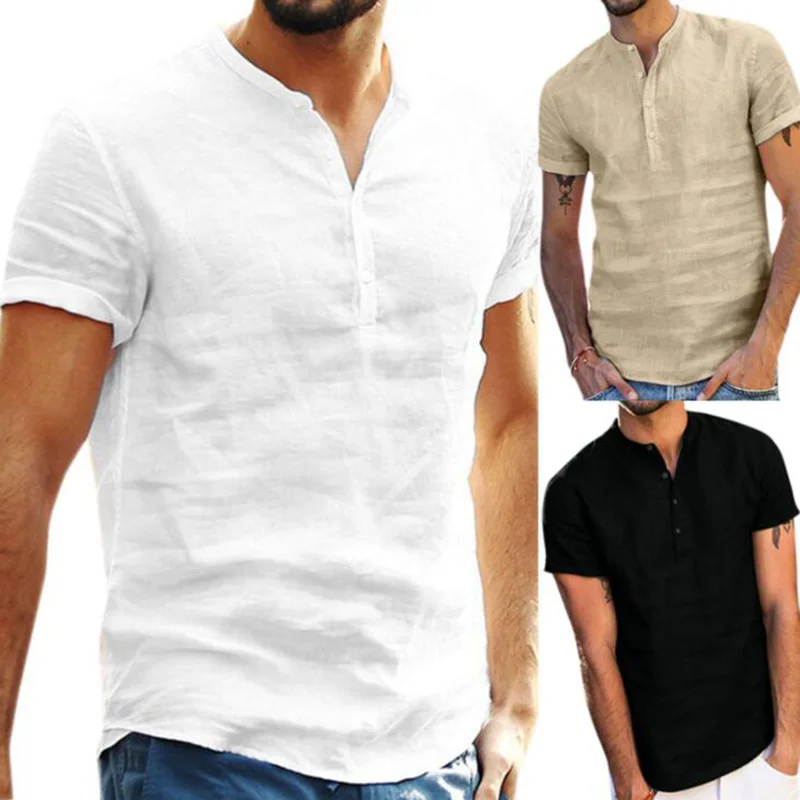 Summer Cool And Breathable Linen Mens Shirt Casual Short Sleeve Stand Collar source Factory Men’s Shirt