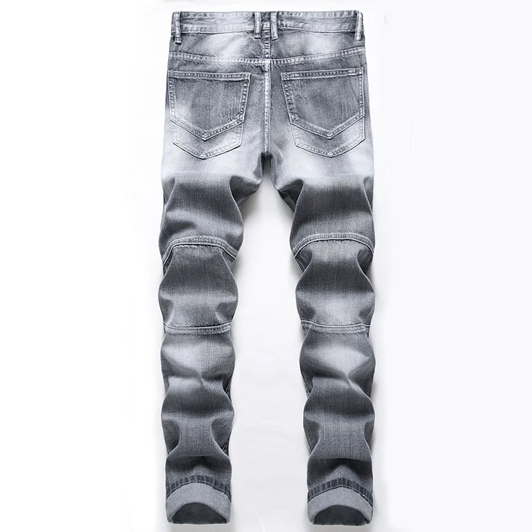 Spring Mens Ripped Hole Jeans Casual Slim Fit Gray Jeans Men Trousers Male Hip hop Denim Straight Pants