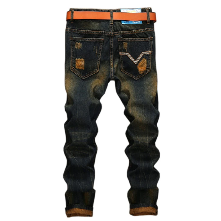 Fashion Snow Washed Patchwork Mens Straight Elastic Jeans Vintage Patch Slim Denim Jeans Long White Cotton Men Jean Trousers