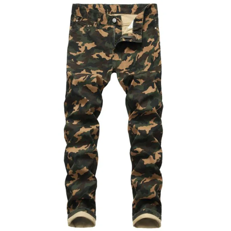 Wholesale Men Slim Stretch Jeans Army Green Printed Casual Pants Streetwear Men Camouflage Jeans Personality