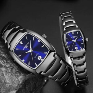 KINGNUOS Fashion Full Steel Rectangle Couple Watches Couple Gifts Minimalist Watch for couple Calendar Luxury wristwatches