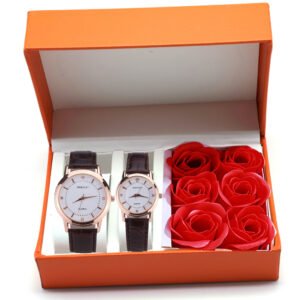 Couple watch set Rose box Love Women and Men Unisex Ladies Leather watch band Quartz Couple Watches and box rose