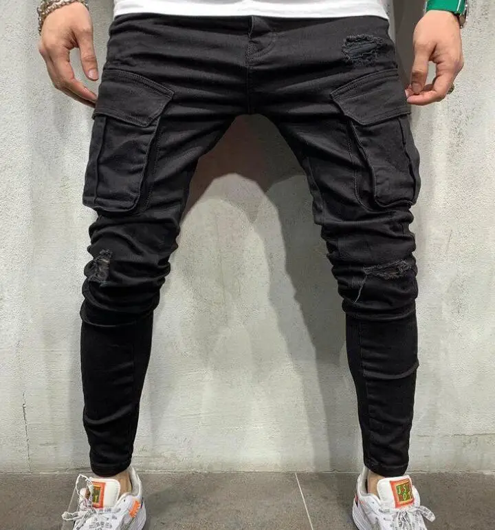 New Fashion Men Skinny Jeans Long Pant Denim Biker Pocket Stretch Black Work Trousers Hip Hop Pants