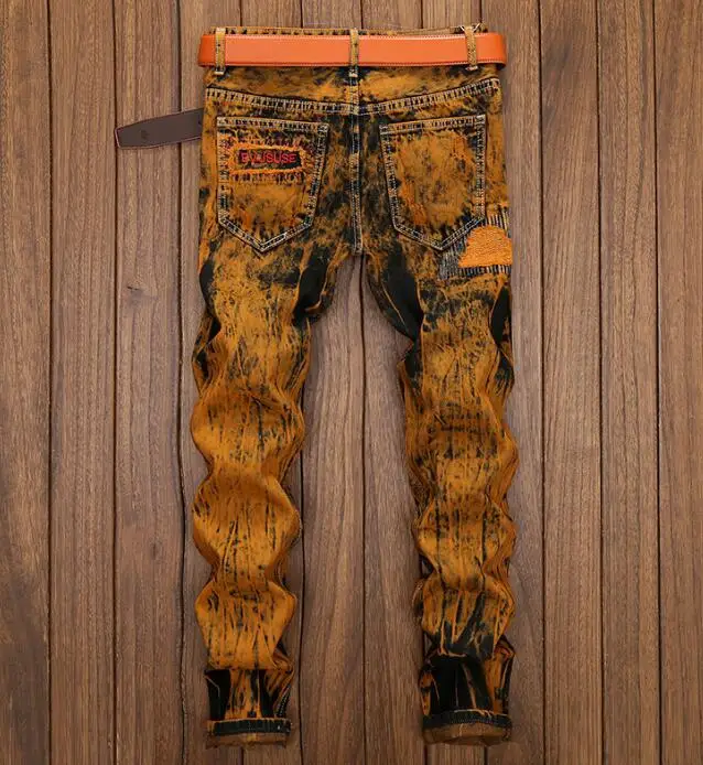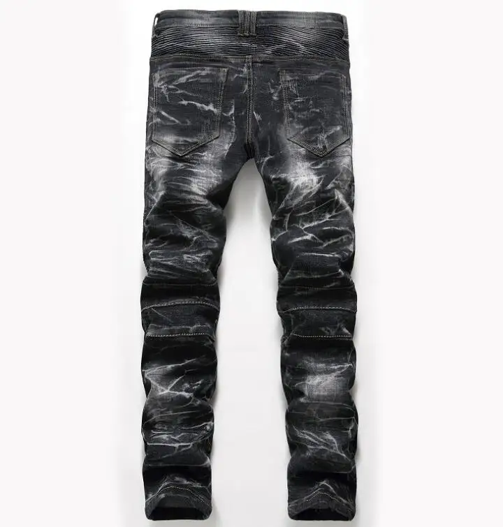 Men Stacked Denim Pants Casual Blue Black Slim Fit Mens Jeans Skinny Stretch Men’s Jeans locomotive Denim Pant