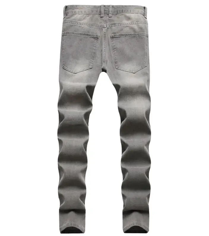 Hip Hop Streetwear Slim Fit Non-Ripped Mens Jeans Gray Color Denim Distressed Skinny Jeans Stretch Jeans For Men