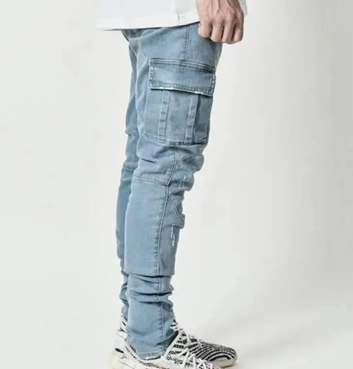 Men Jeans Pants Casual Cotton Denim Trousers Multi Pocket Cargo Jeans New Fashion customized Pants Side Pocket