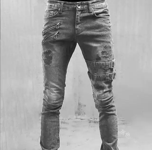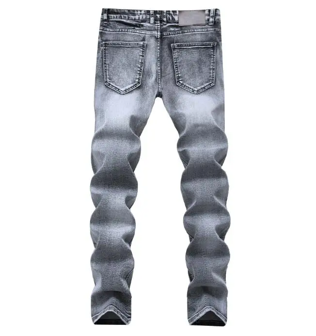 Wholesale personality ripped stretch leg denim trousers hip-hop locomotive retro elastic jeans for men