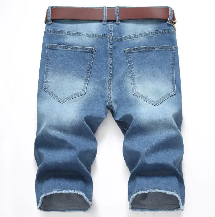 Men’s slim fit fashion short jeans casual jeans with holes ripped men’s denim shorts size 28-42