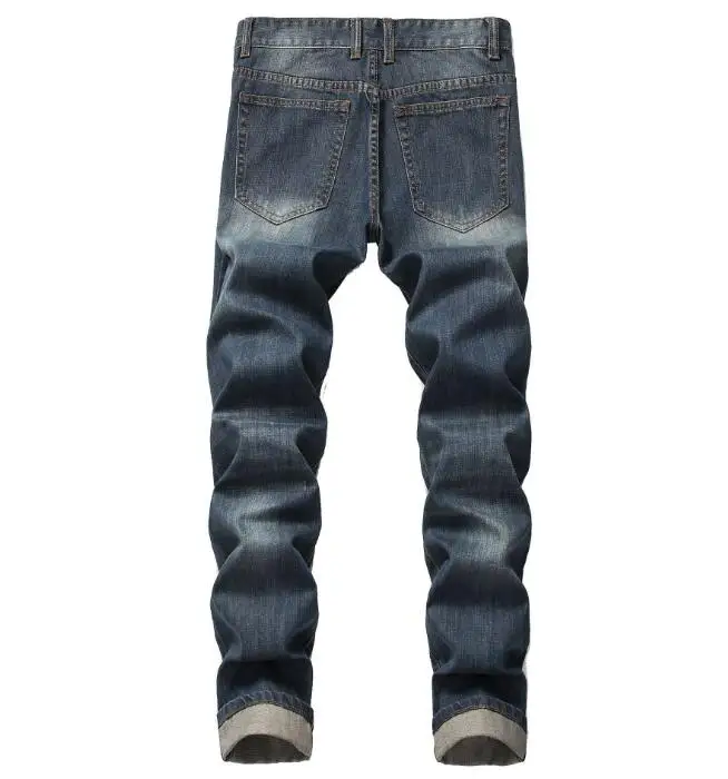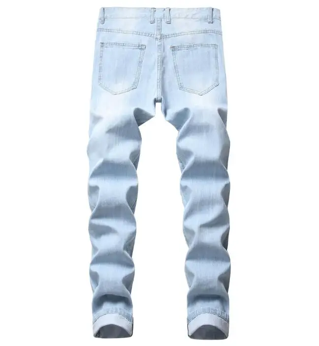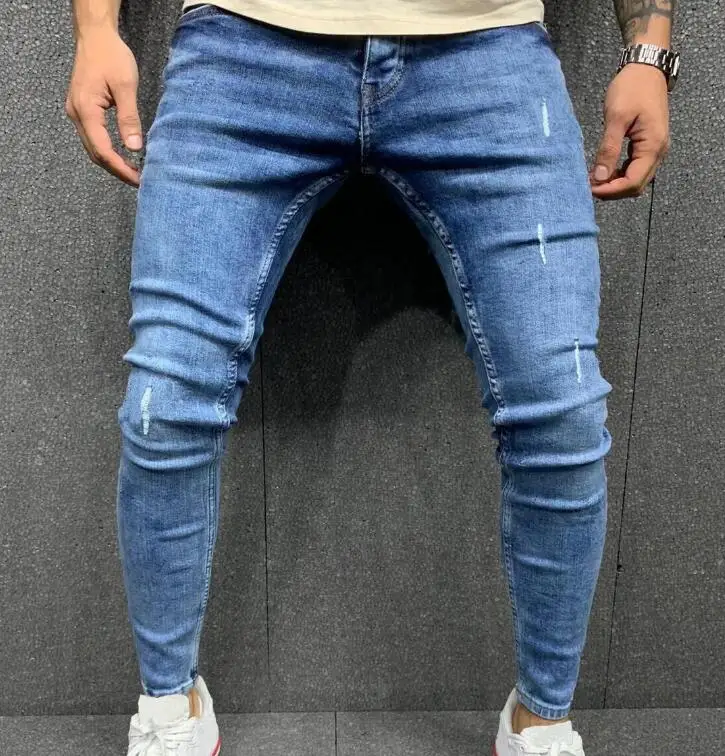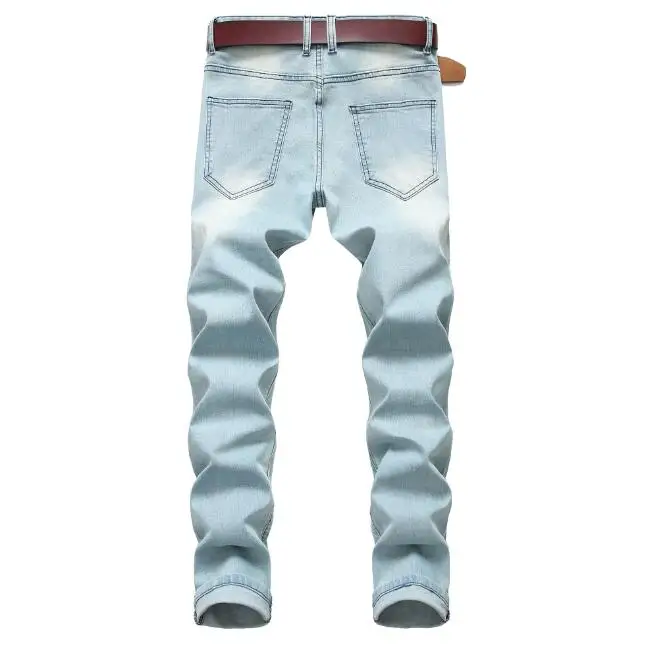 High Street Slim Fit Jeans Men Casual Fashion Trouser Blue Custom Ripped Jeans Denim Pants