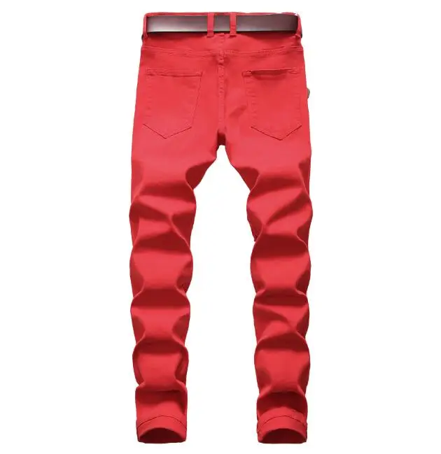 Men’s casual big hole stretch jeans high street slim fit denim pant men’s black red white pants