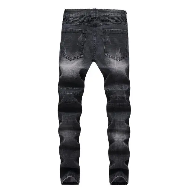 wholesale trendy pleated ripped slim fit denim pants high street black straight leg jean for men