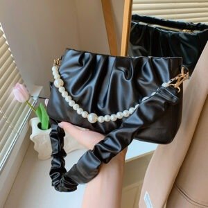 Trendy Latest Handbags Pearl Accessories Women’s Handbag 2024 PU Leather Messenger Underarm Shoulder Bags