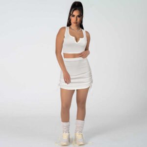 Custom logo Sleeveless tight pleated draw rope short skirt sport bike Jogger skirt sets women 2 piece outfits 2023