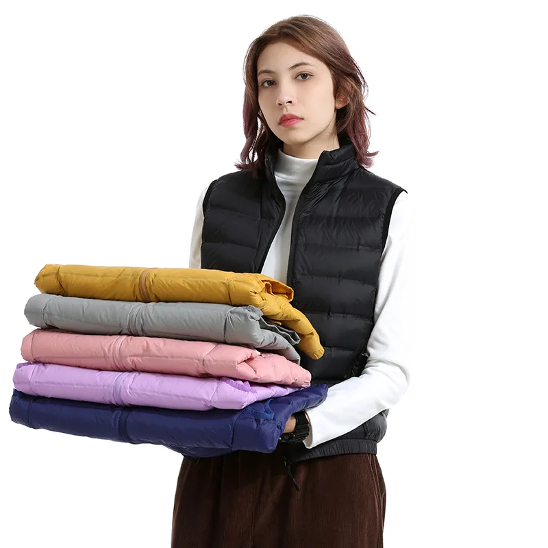 DJ-P0428 90% white duck velvet spring and autumn short stand -up collar sleeveless light vest