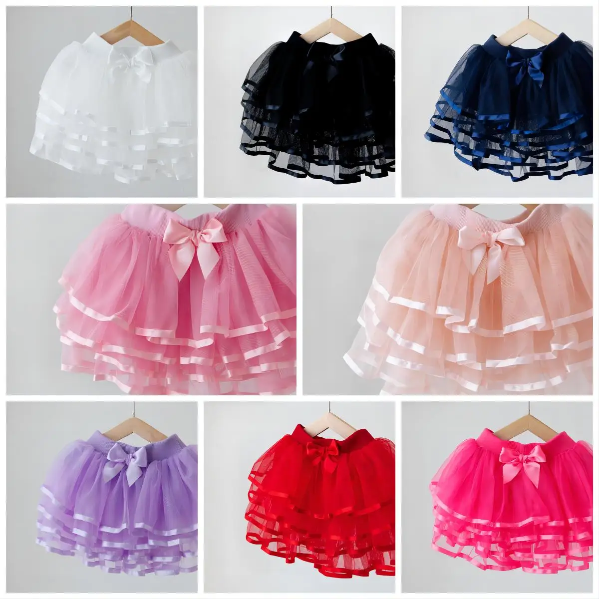 Kids Skirts Pleated Tier Skirt Bow Toddler Tutu High Quality Baby Girl Layer Tulle Skirt Kids Hot Pink Dark Blue Tutu