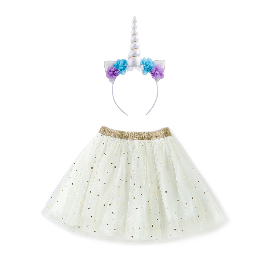 Kids Baby Glitter Tutu Skirts Set with Unicorn Horn Headband Princess Outfits White Tutu Skirt For Little Girls