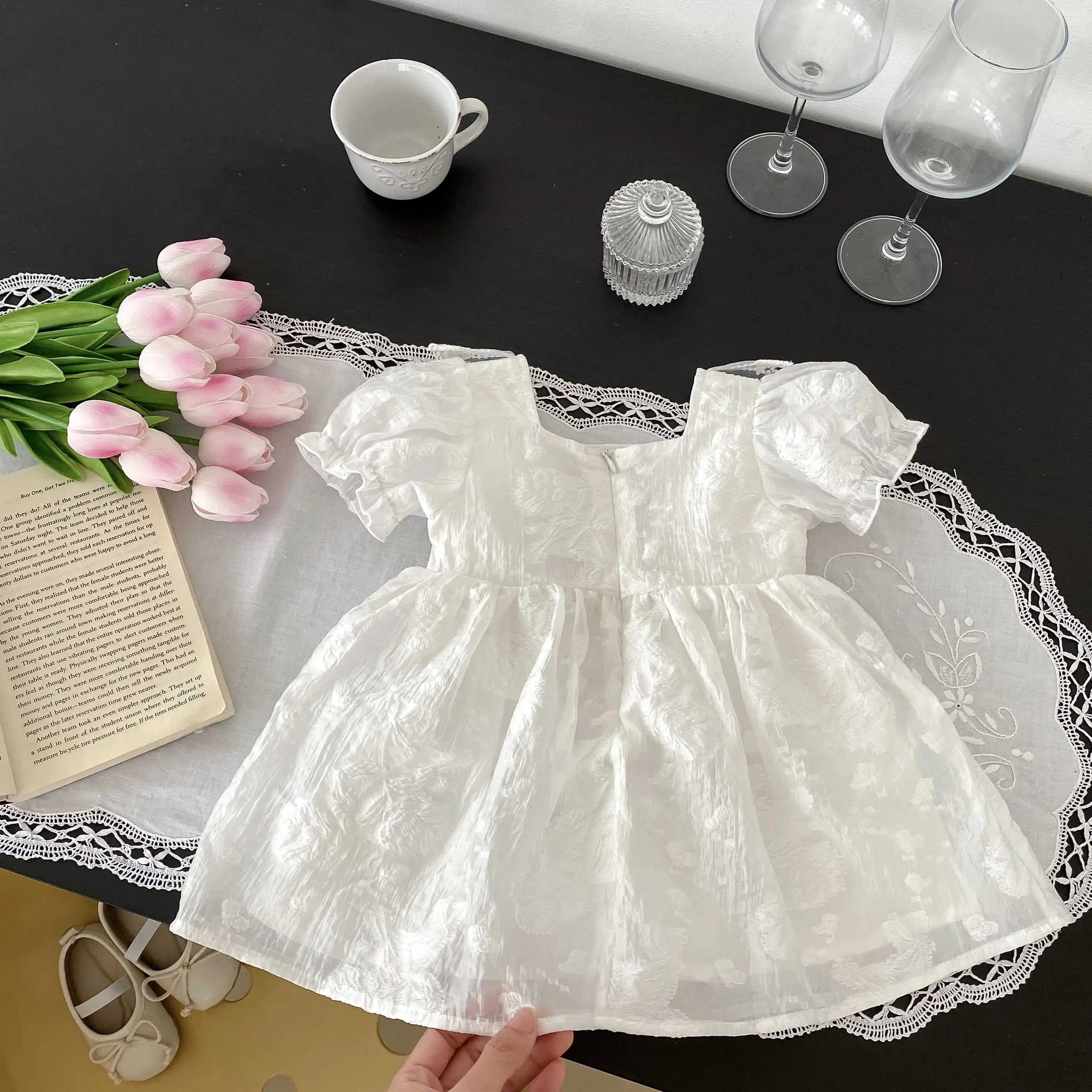 newborn 0-3 years old lace A-line dress short-sleeved infant cotton loose clothes baby girls dresses