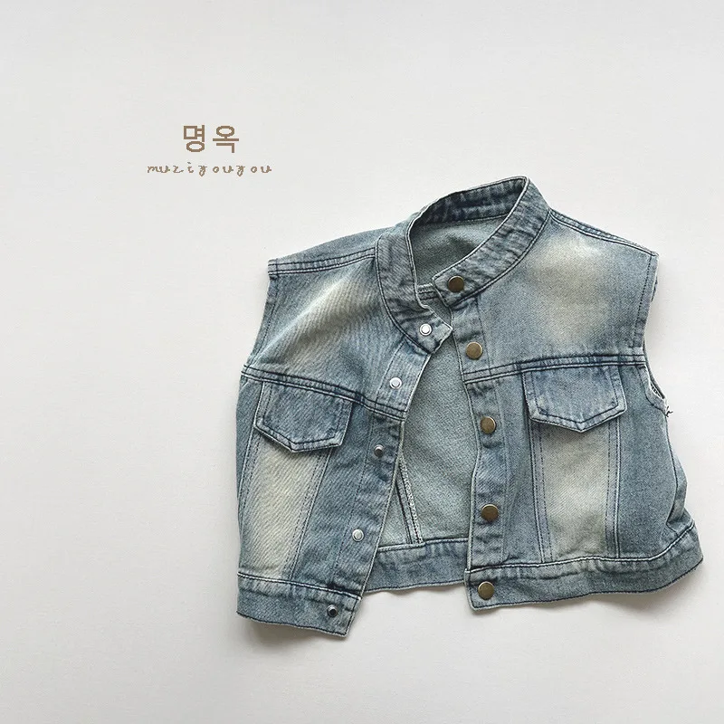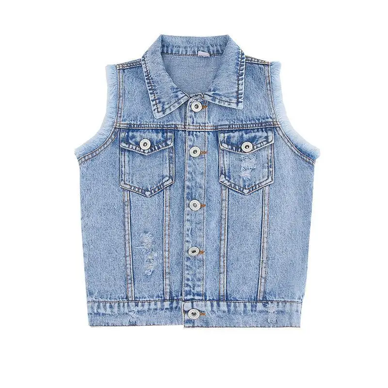 P110052 Spring Summer boutiques Baby Girls sleeveless girls kids’ jeans vest jacket children’s clothing
