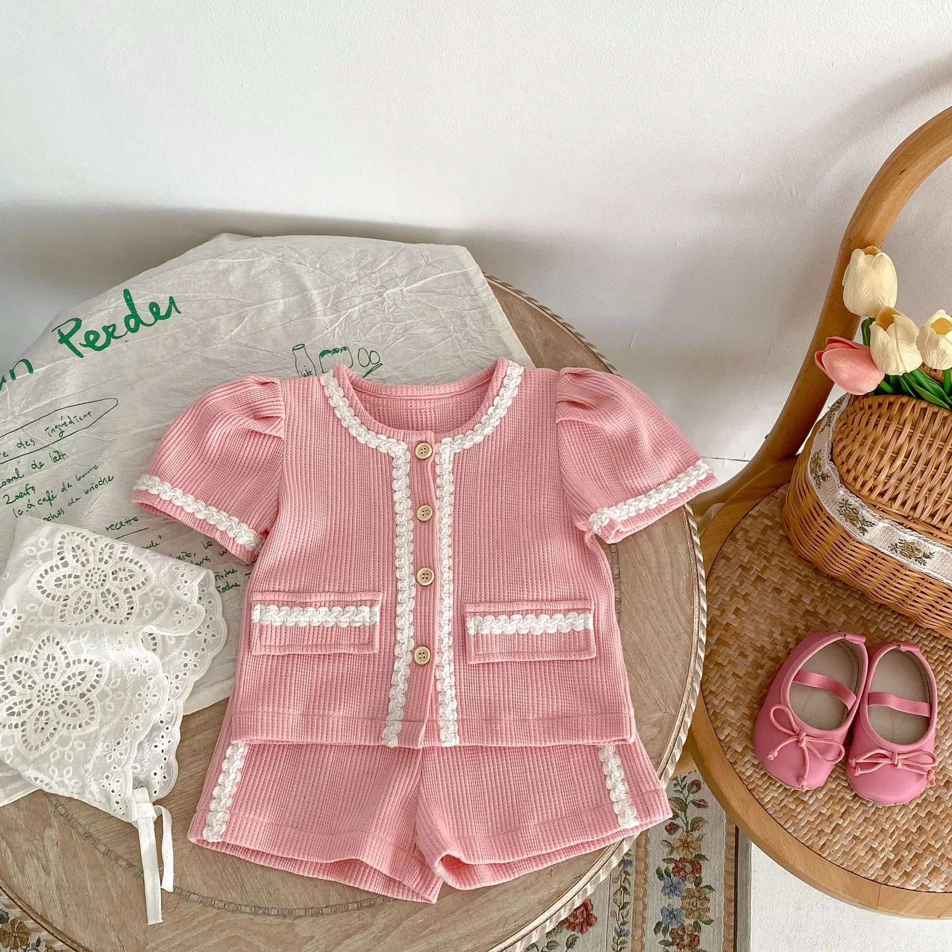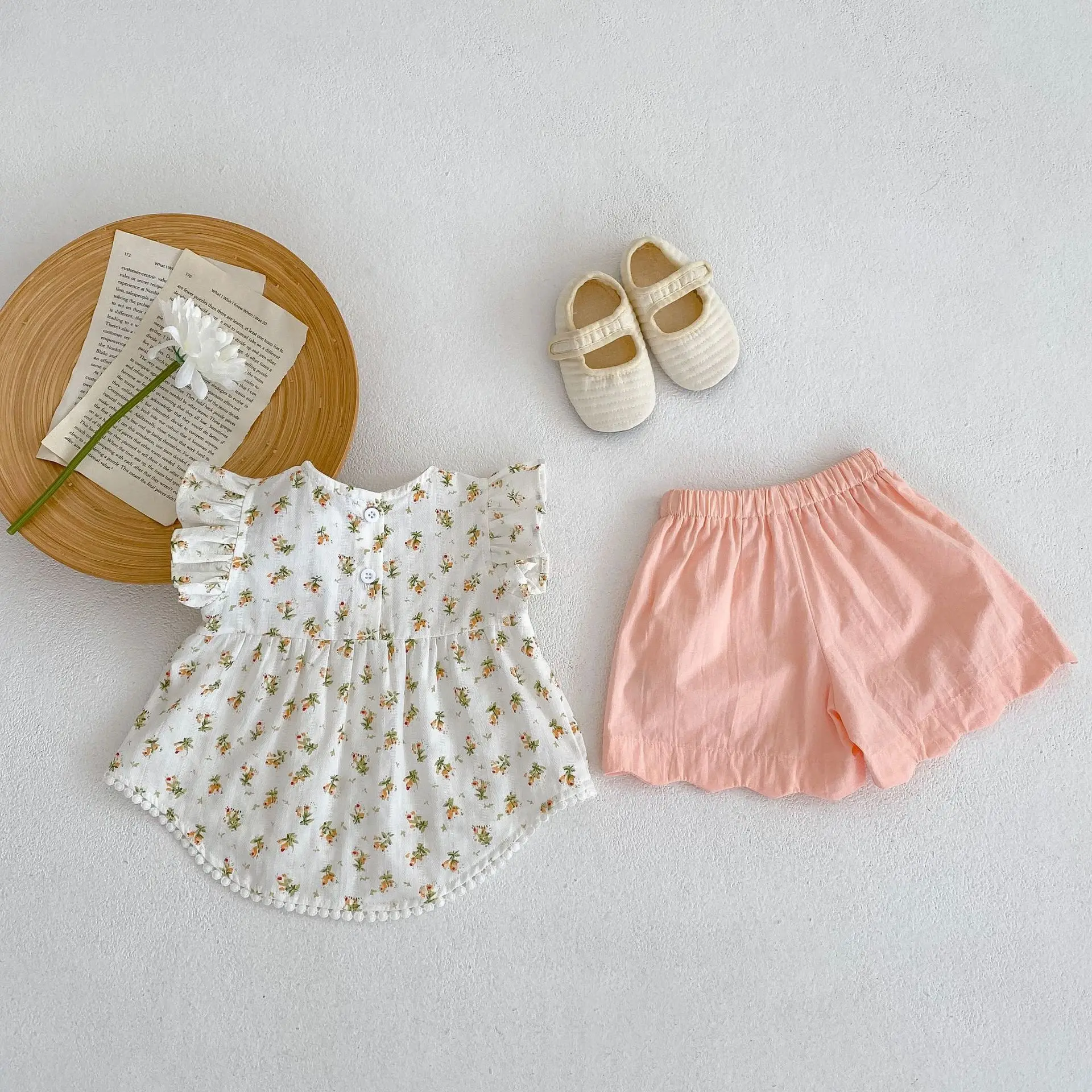 summer infant clothes baby girl clothing set Newborn cotton top vest shorts two-piece suit