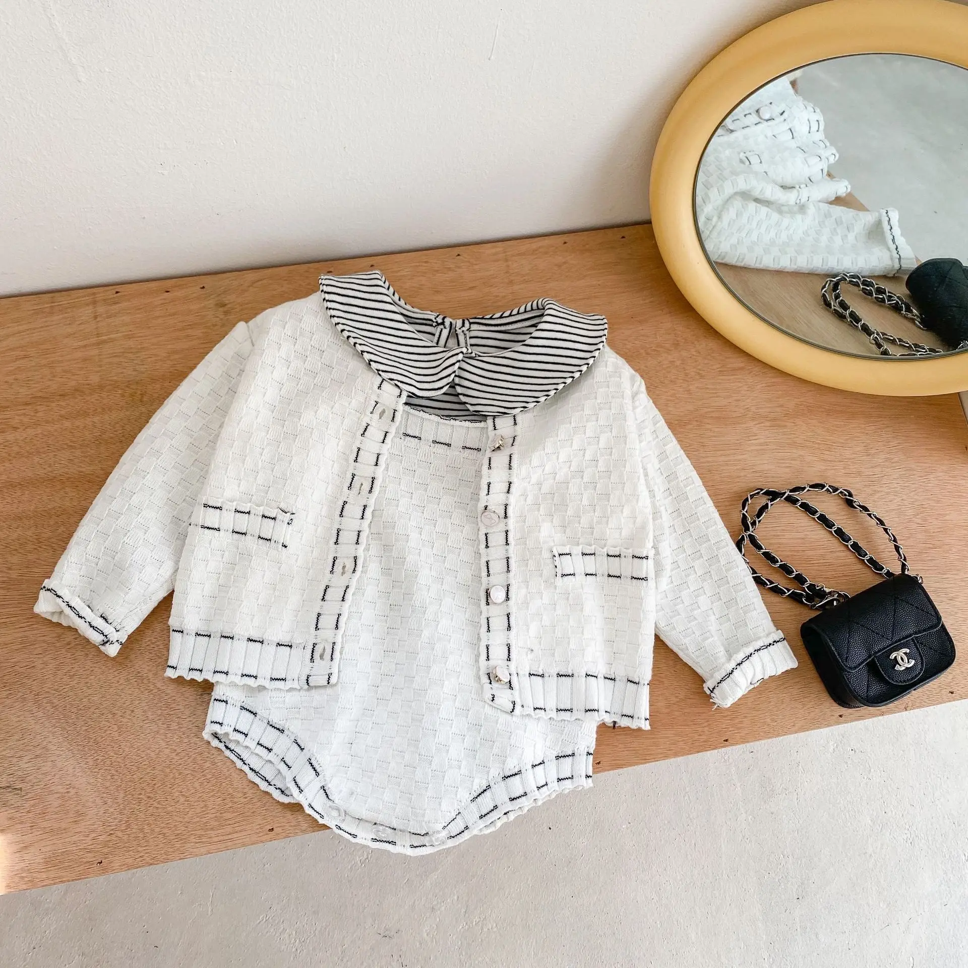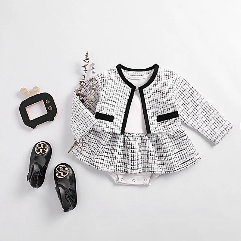 spring and autumn baby clothing set knitted romper set baby small fragrance coat strap romper 2-piece