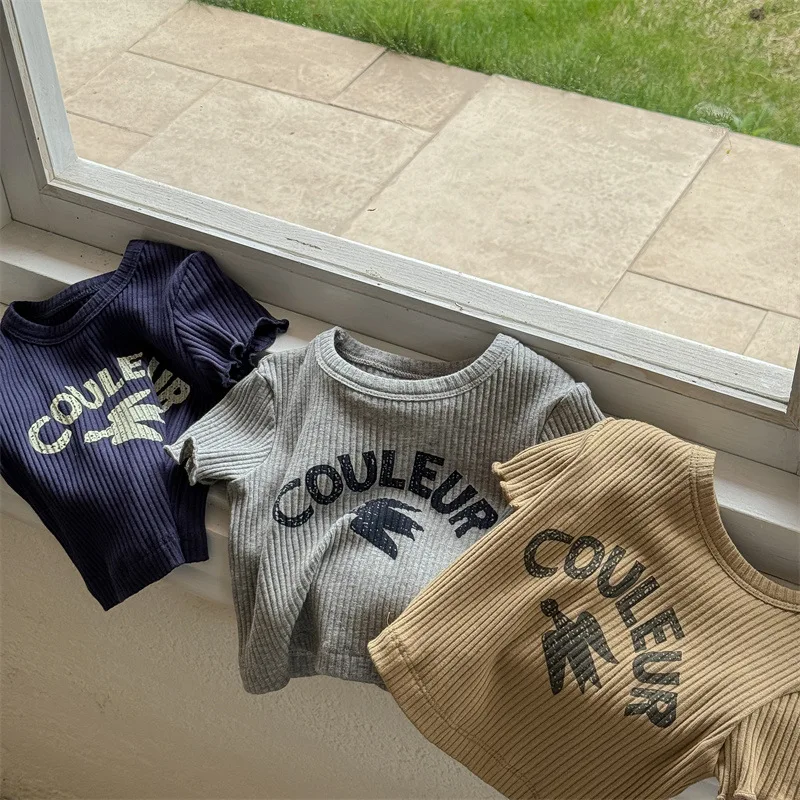 Q4417 1-8 Years old Children’s Clothing Toddler short-sleeved Crew T-shirt Rib boys Printed T-shirt