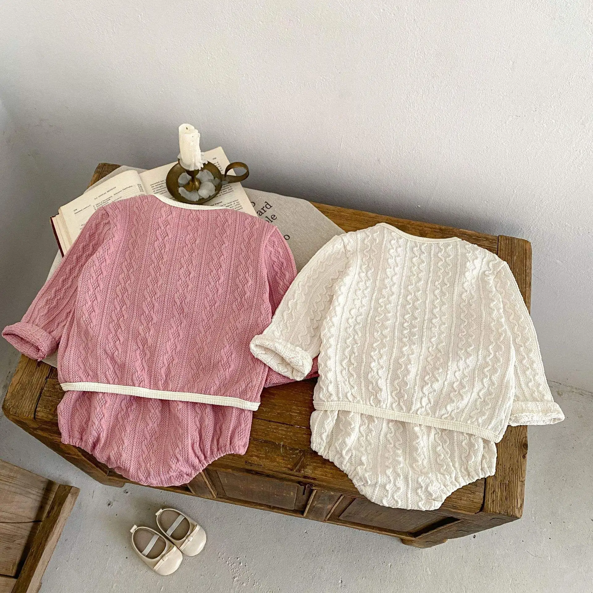 Spring Infant 0-3 Years Old Cardigan Toddler Solid Color Romper Newborn Baby Girls Clothes set