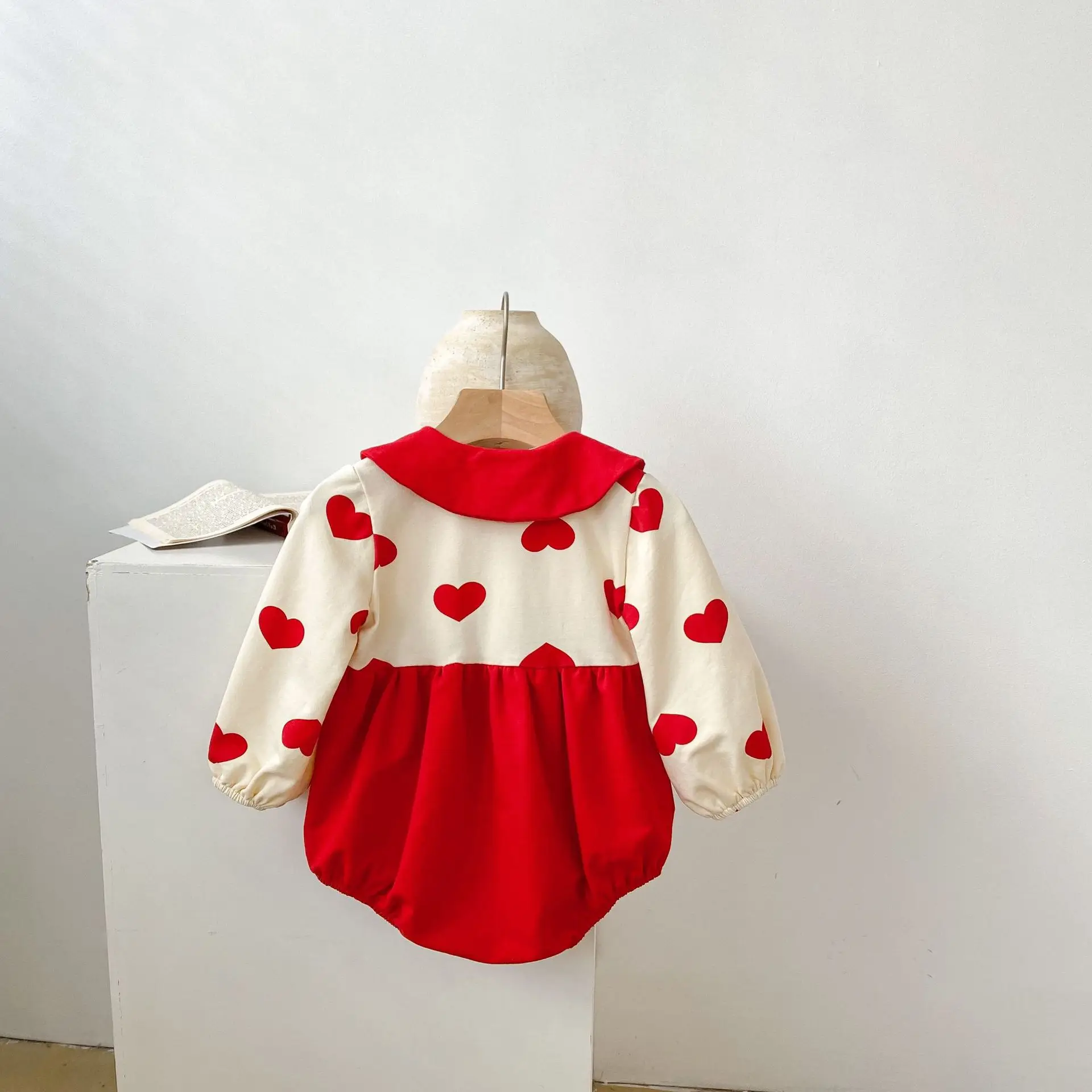 spring and autumn newborn wear Baby Jumpsuit love printed bowknot baby girl romper cotton
