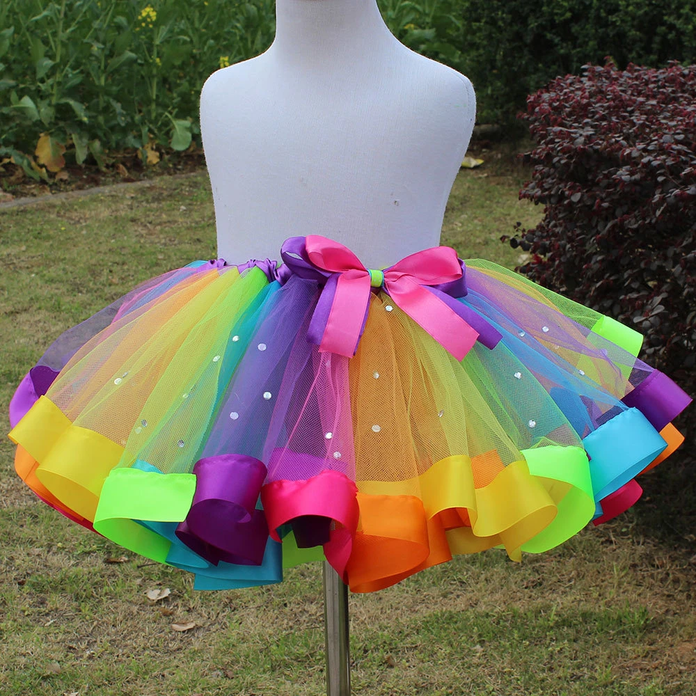 Toddler Rainbow Tutu Kid Girls Tutus China Children Classical Bowknot Rhinestone Colorful Rainbow Tutu Skirt For Girls