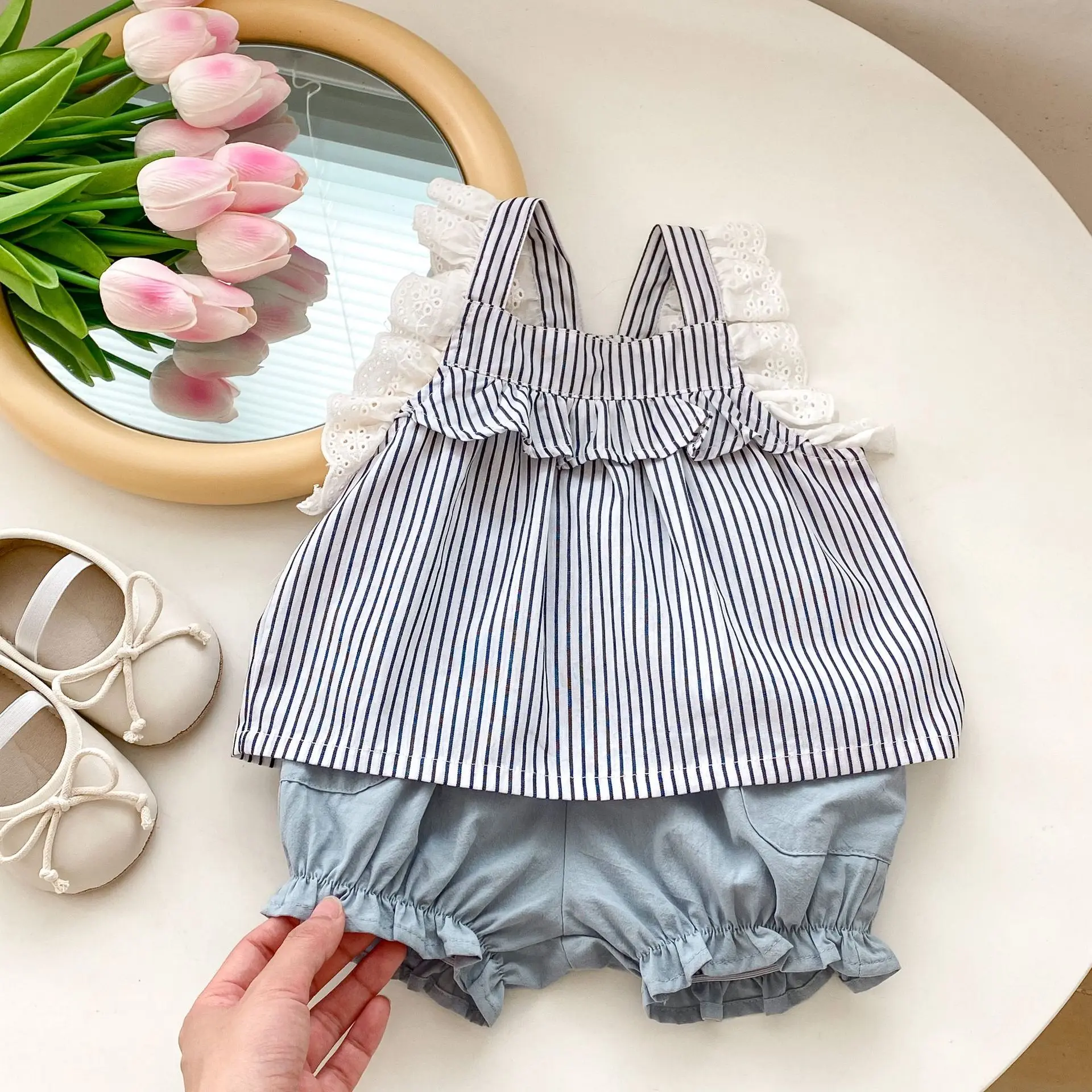 Summer Infant Stripe Top+Bread Pants 2pcs Cotton Fashion Baby Clothing Sets