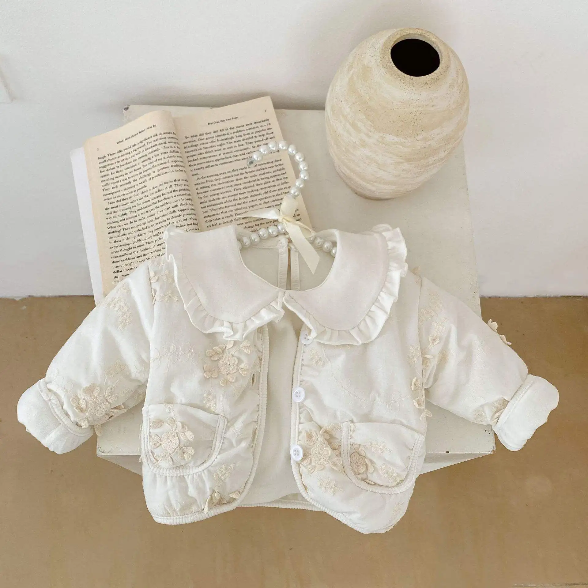 Winter new infant girls cotton coat Baby flower v-neck jacket Thickened long-sleeved baby coat