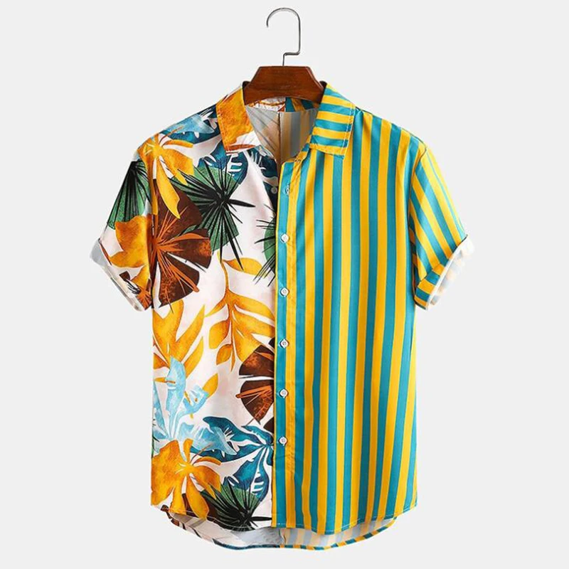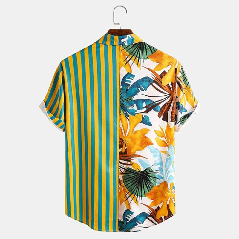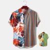 2021 Wholesale Man Beach Shirt Fashion Men Hawaiian Shirt Short Sleeve Streetwear Print Striped Summer Chic Blouse