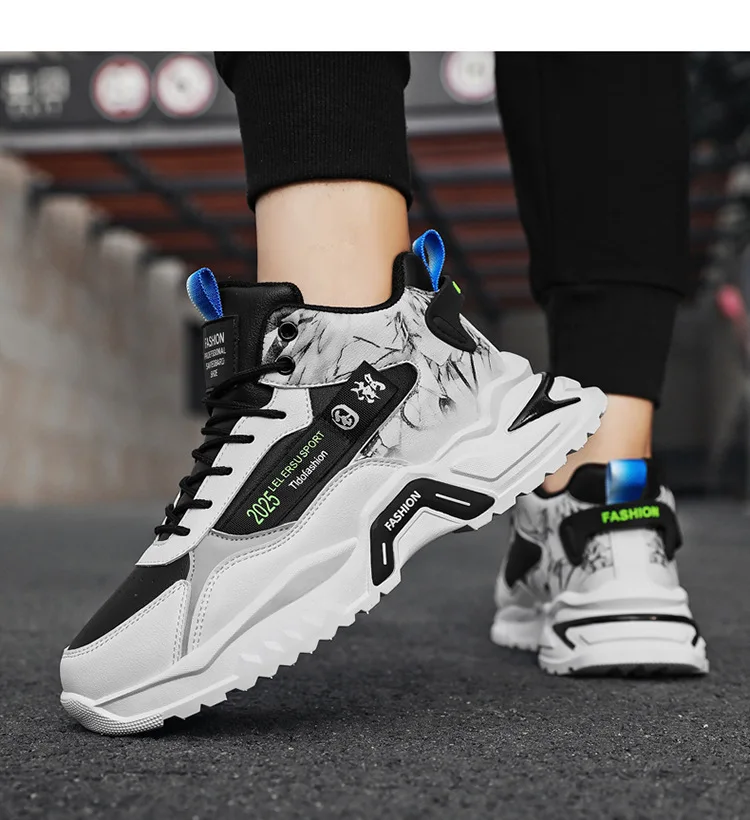 2024 Men’S Shoes New Men’S Casual Leather Shoes Trend Men’S High Sports Daddy Shoes $7.70