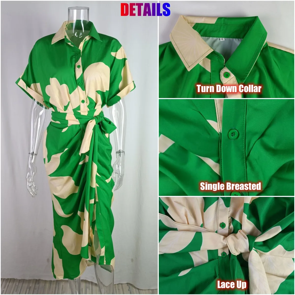 2024 Women Summer Casual Dress Short Sleeve Floral Print Dress Single Breasted Long Lace-up Dresses $8.30