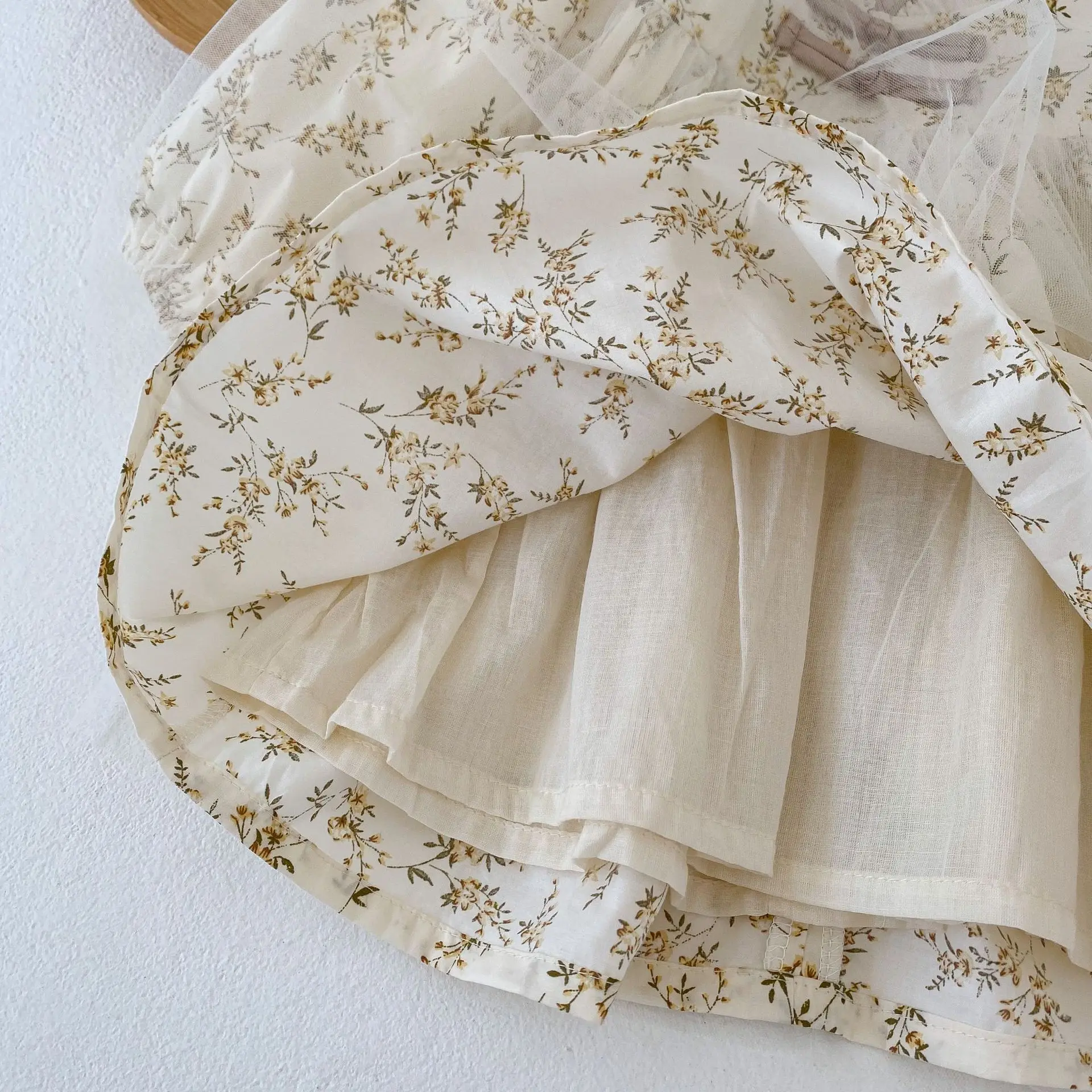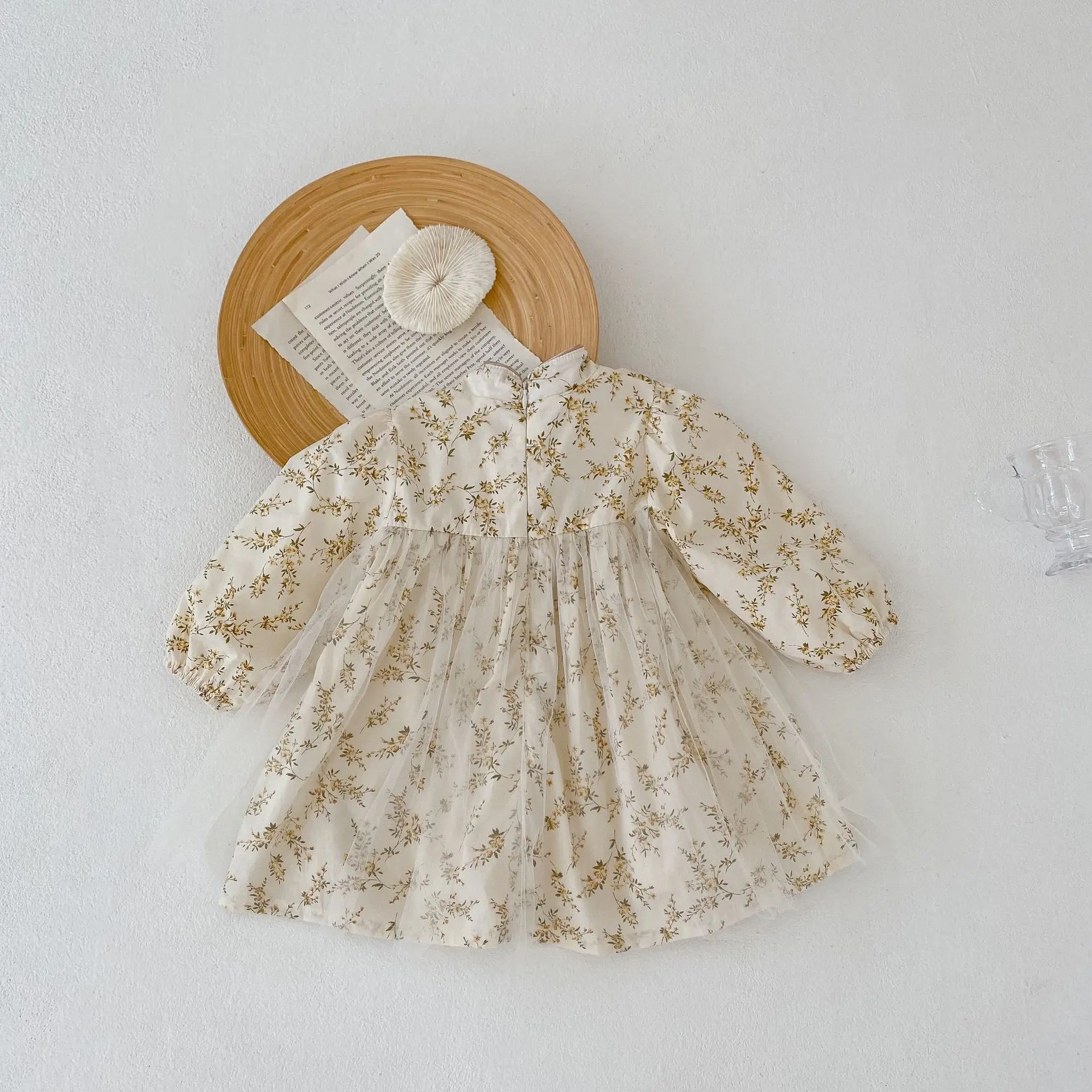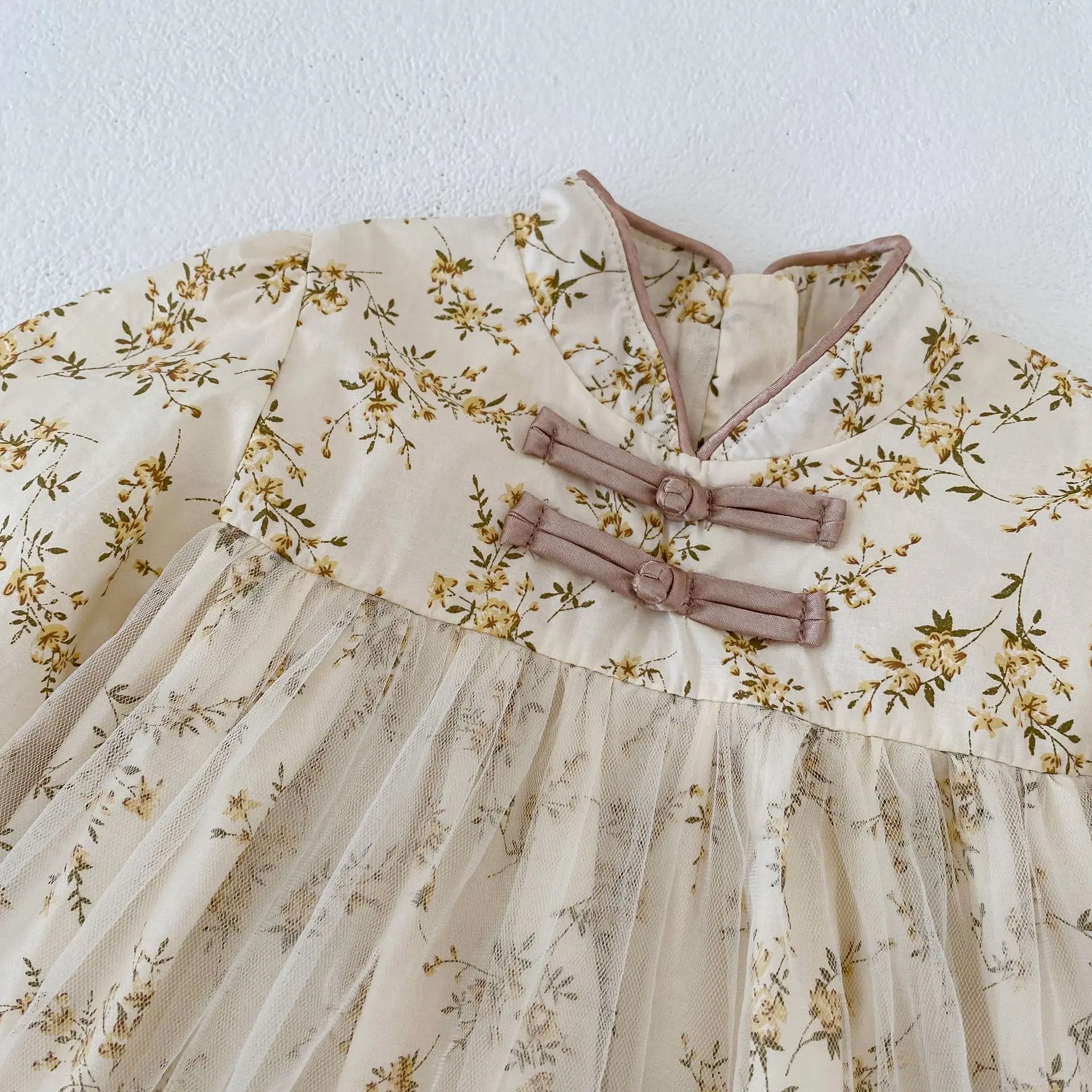 autumn High quality infant girl baby stand collar flower full printed mesh long sleeve dress $1.70