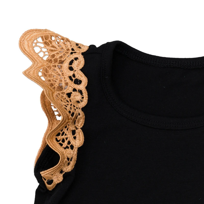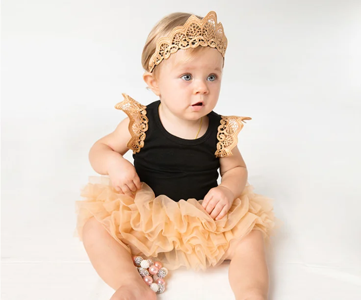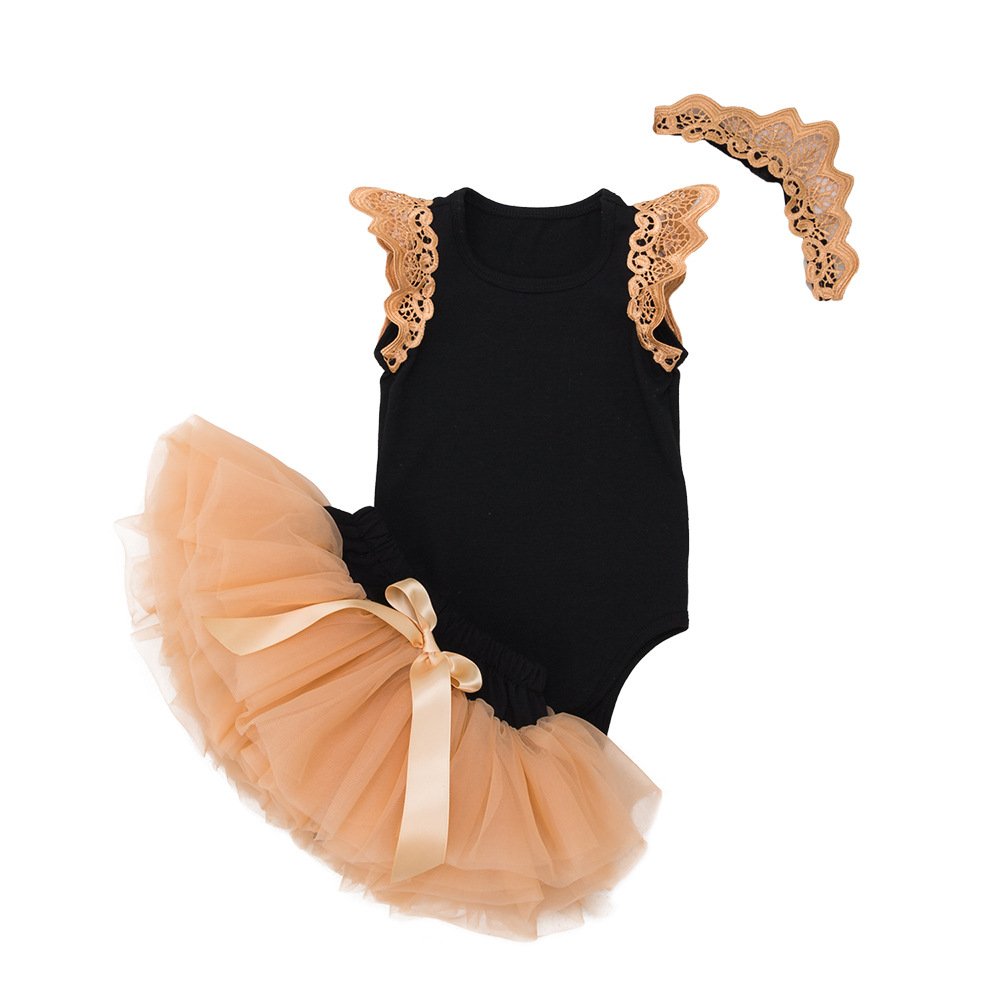 Baby Girl Sleeveless Romper Tutu Lace Skirts Princess Party Dress Black Clothing Sets With Bow