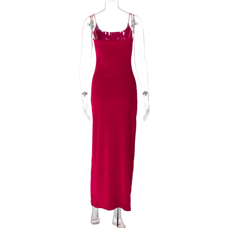 Bodycon Velvet Sleeveless Spaghetti Strap Elegant Evening Party Long Dress Summer Prom Vacation Casual Clothing