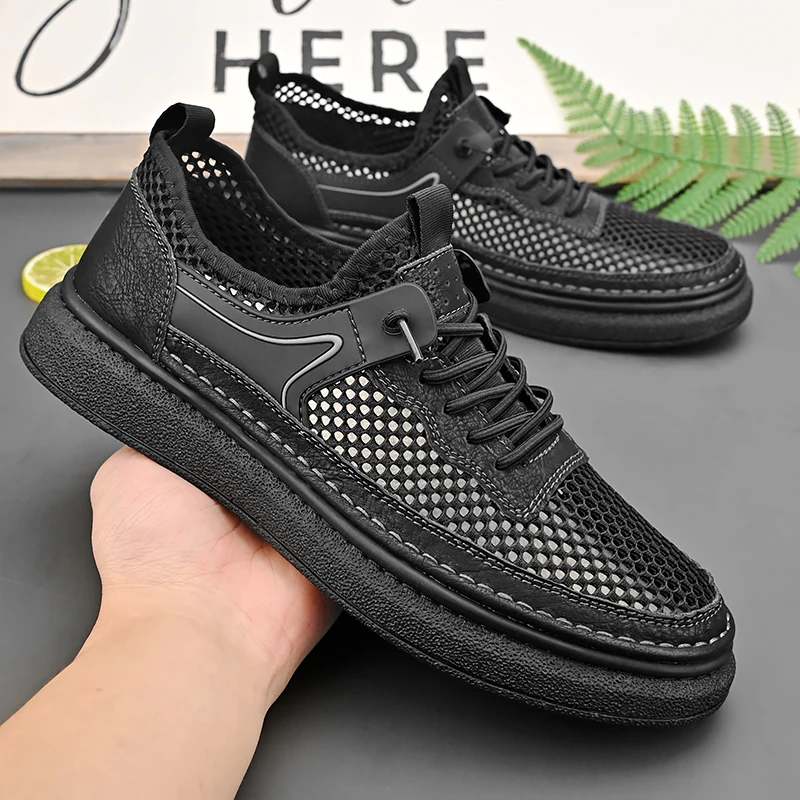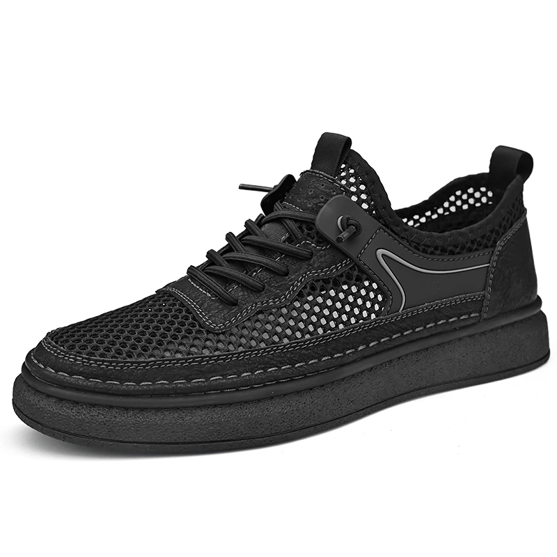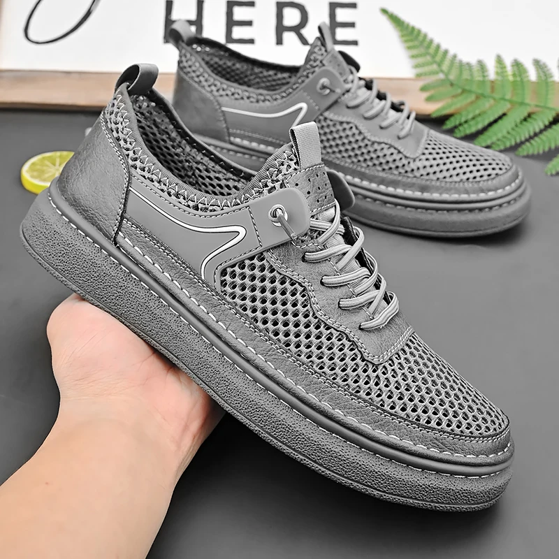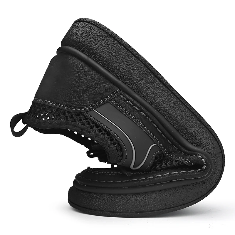 Custom Design OEM service mesh genuine leather summer men closed toe hand made leather casual shoes $18.40